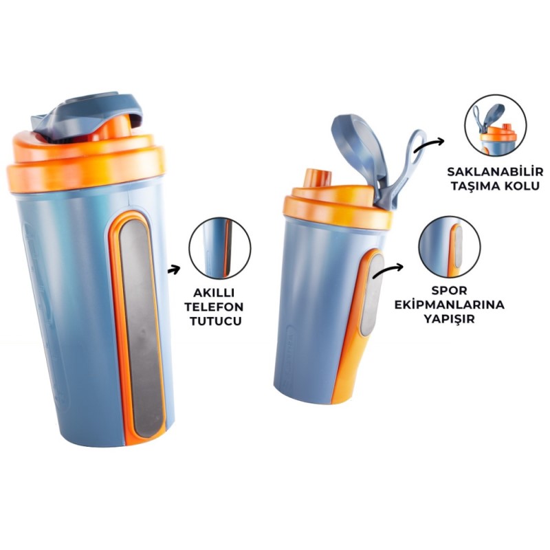 Blentra Mıknatıslı ve Telefon Tutuculu Shaker 750 ml Mavi Sarı Özellikleri: